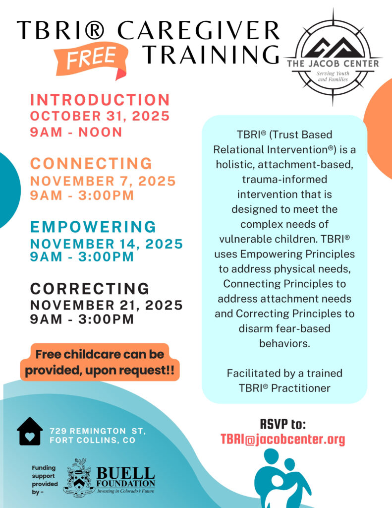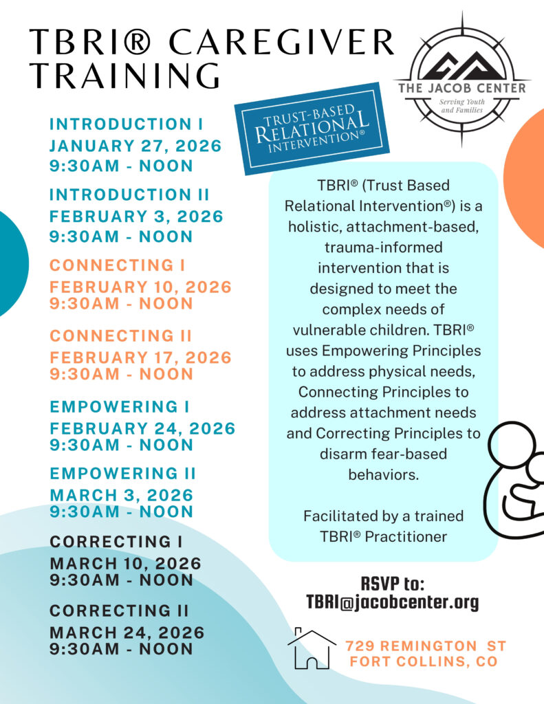Request Services NowThe Jacob Center is one (of a few select) organizations bringing TBRI®-based services to Northern Colorado. We believe that TBRI® classes create a framework for caregivers that allows them to connect with children and youth and to understand trauma-based behaviors in a supportive and non-judgmental way. This foundational knowledge allows caregivers access to real-world skills that help create change in their family system, and also in community systems.